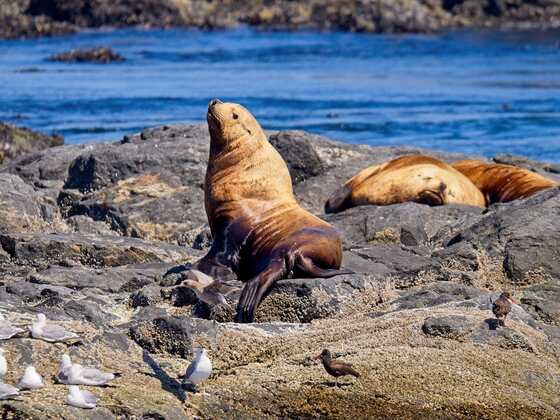 Steller sea lions rest at "Race Rocks" near Victoria, BC.