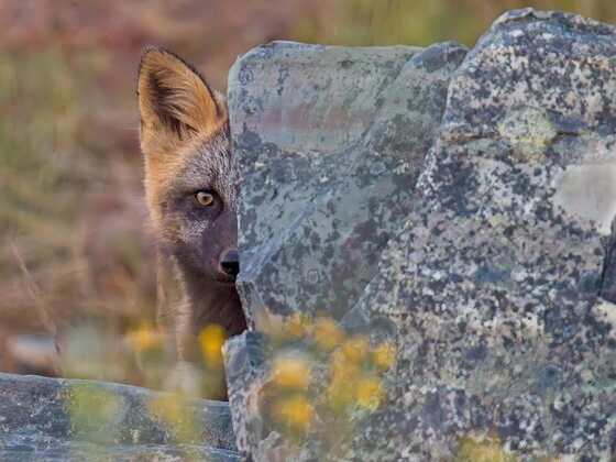 A fox can't resist a quick look from its safe place.