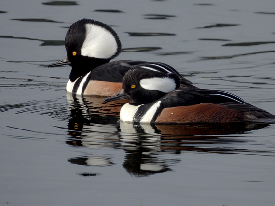 A day of birding around Victoria BC and I always welcome seeing the hooded mergansers. The males especially with their flashy crest are an impressive sight to see. The head feathers of a male Hooded Merganser are known as a crest, a fan-shaped hood that can be raised or lowered for display, particularly during courtship. This reveals a striking black and white pattern against their dark head and neck. The collapsible crest is what gives the duck its name, as "hood" refering to it's head covering.