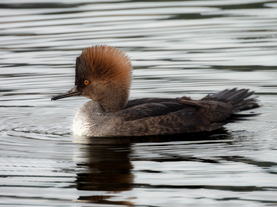 It had been raining hard for days, which is not uncommon for Victoria, BC in winter. I was enjoying a much-needed beachside morning outside and stopped to watch the hooded mergansers dive and feed on fish. A group of them came closer to shore to primp and preen afterward. This female flashed her perfectly coiffed crest as she posed for a portrait.