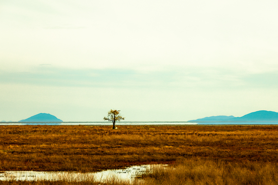 A solitary tree stands at attention in the mud flats of Mud Bay.