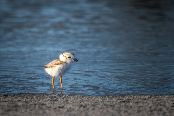 A tiny Piping plover (Charadrius melodus) takes its first brave plunge into the world of wet feet. Only a few days old and already exploring the surf, this chick proves courage comes in fluffy packages. Endangered but enduring, the species carries on one chick at a time.