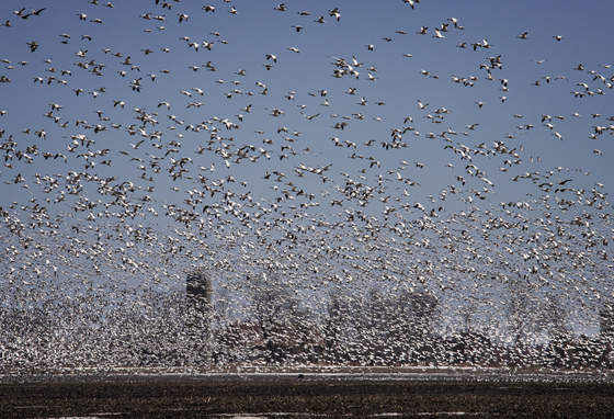 I learned about the Snow Geese migrating through Ontario and this year, I tried to find them. About an hour outside of Ottawa, I found them on a farm. Thouands of them.