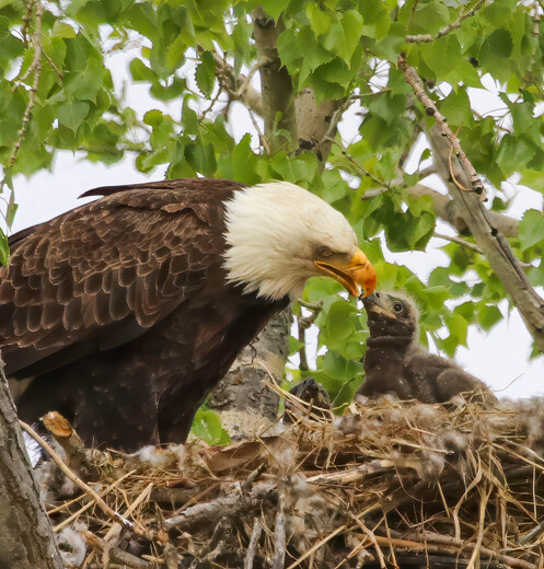 This bald eagle is feeding it's eaglet in the nest