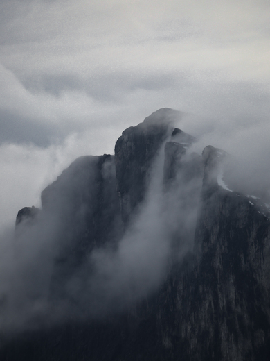 I captured the clouds drifting through the peak of the Yamnuska mountains.