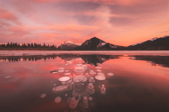 For forty-five minutes, the sky blazed with golds, oranges, and deep reds, reflected perfectly in the snow free frozen lake. The juxtaposition of the frozen lake, the fiery sky, and the rugged silhouette of the mountain created a fleeting, almost surreal scene—a reminder of the extraordinary beauty hidden in Canada’s winter wilderness and the remarkable ways light and landscape can interact.