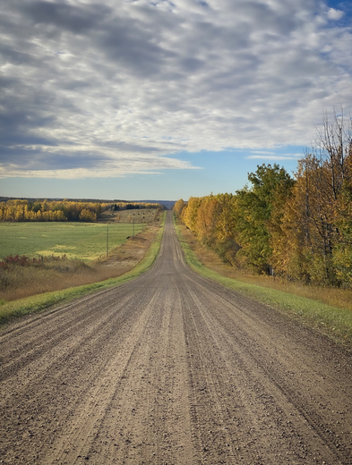 backroad fall color road gravel tarmac freeway highway nature outdoors sky horizon grass natural_landscape plain ecoregion field grassland rural_area cloud