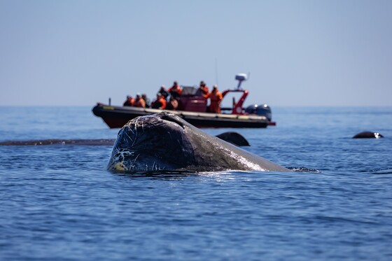 An adventure tour group observes a Sperm whale rising its mystical head from the sea amongst its pod to reveal a lifetime of scars that represent stories of survival from unfathomable depths to the surface of the sea.