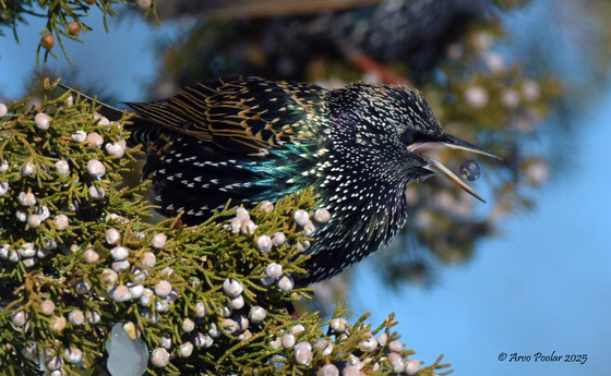 caught about 20 of them feasting on a Juniper tree-bush and off the ground