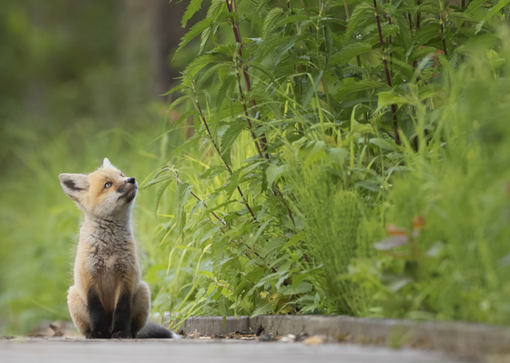 A family of foxes had denned under a broadwalk in a park. The fox kits frequently played on the boardwalk, chasing each other and fighting over food when their mom returned with a meal, and were inquisitive about their surroundings