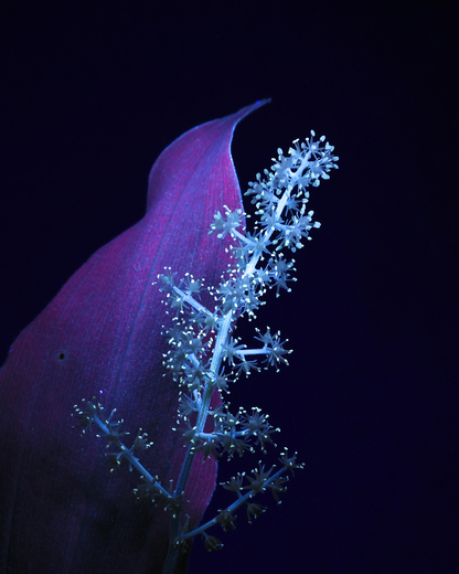 A sprig of False Solomon's Seal (Maianthemum racemosum) photographed in ultraviolet light. UV light can give new perspectives on the familiar in nature.