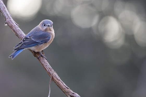 I have a bluebird trail and a nesting pair but rarely do they come into the yard. A few weeks ago I noticed about 4 bluebirds in the yard checking out the martin gourds and owl boxes. I got my camera ready and a few days later I managed a picture through the kitchen window. This group have decided to stay the winter I heard them out on the trails a couple days ago. I dream of pictures of them in the snow.