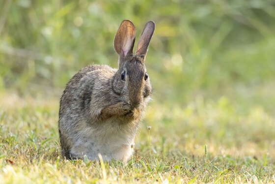 At the far end of my property runs a trail. A cotton tail was often near the bend but was gone in a flash as soon as I was in sight. I decided to see if I could manage to get this little creature to accept my presence. I started this little experiment around May. Each day as soon as I caught a glimpse of the bunny I would turn around and leave it in peace. After a week I would stop to take a couple pictures from the far end of the trail. I was able after a few months to get close enough to take these shots one day. For me it was such a victory, I saw the bunny a few times after this but never was I able to capture images. The bunny does not appear to be in the area any more.