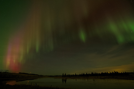 This image was captured at 8:16 PM on November 12, 2025, when an intense geomagnetic storm triggered an early and vivid display of the Northern Lights.