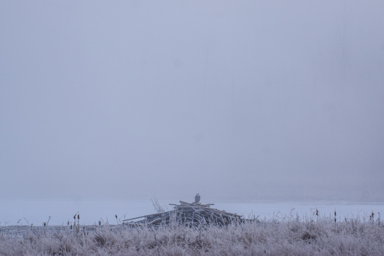 While travelling through Elk Island National Park I noticed in the clearing on a beaver dam was a dark silhouette. At first I believed it to be a bald eagle but I was mistaken and as I approached I realised it to be a gorgeous juvenile female snowy owl! This is my first and only encounter with a wild snowy owl and to see it in the National Park that's more like a second home to me was extra special