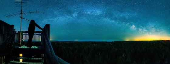 nature night outdoors scenery sky person landscape panoramic blue astronomical_object astronomy star galaxy