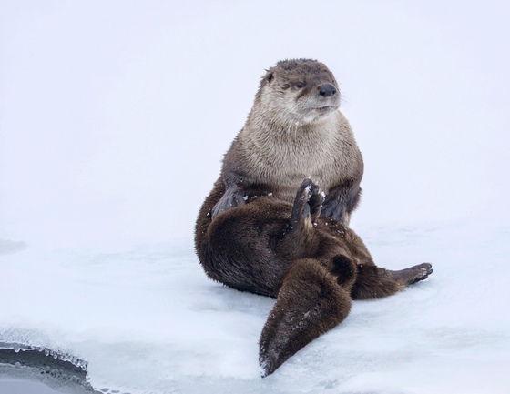 otter river winter ice snow animal bear mammal wildlife mustelids carnivores fur