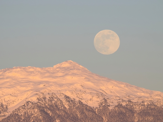 Tagged: sky night moon full snow astronomy nature outdoors full_moon mountainous_landforms mountain atmospheric_phenomenon astronomical_object hill mountain_range winter terrain