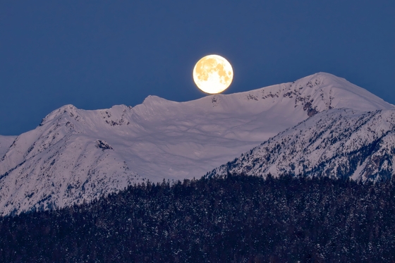 Tagged: sky night moon full snow astronomy nature outdoors full_moon mountainous_landforms mountain winter astronomical_object mountain_range hill ridge