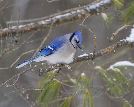 A real Christmas Card with the Blue Jay posing in the silent snowfall. Happy Holidays!