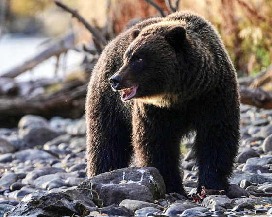This awesome Grizzly gave a mighty roar as he waiting for a passing spawning Sockeye Salmon on the Chilko River in BC.