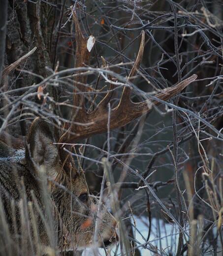 A mulie buck with a broken antler tine from fighting off other bucks.