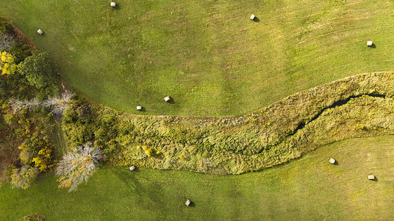 Finding patterns with a drone at 120 meters above an autumn hay field.