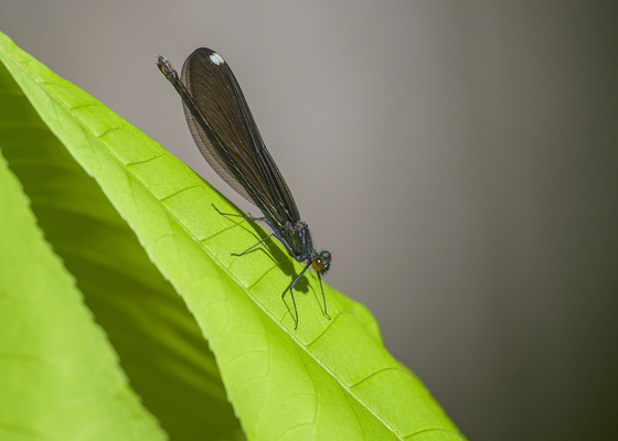 Ebony Jewelwing - this is a female - Native to Canada, is a species of broad-winged damselfly and lives near wooded streams and rivers.