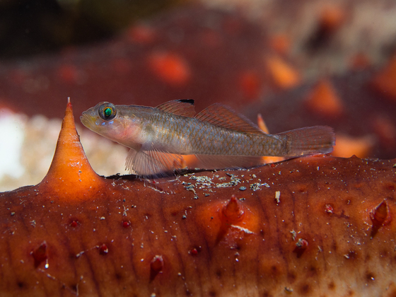 I'm often looking from species in juxtaposition. I was diving at Kelvin Grove and spotted gobies flitting around a pile of sea cucumbers. I paused and waited for them to position themselves to get their pose right.