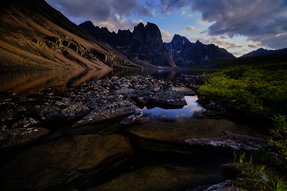divide lake tombstone territorial park yukon nature outdoors wilderness mountain mountain_range plateau scenery creek stream water peak mountainous_landforms rock natural_landscape tarn reflection hill highland