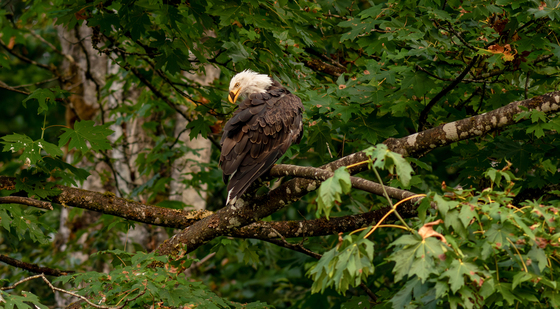 On a sturdy limb above the river, a bald eagle tends to a broken feather, preening methodically. Neck craned, beak pinching the delicate plume, it restores its wings with quiet determination. Even in moments of stillness, survival is an ongoing task.