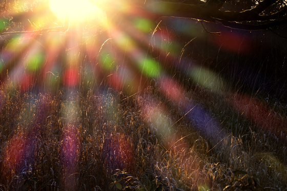 setting sun rays dried grasses flare light sunlight nature outdoors sky green yellow orange lens_flare astronomical_object sunrise morning