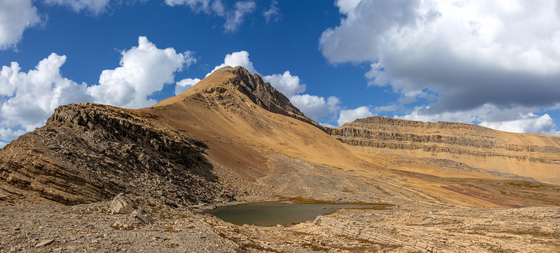Most visitors to Banff National Park will have seen the high peaks covered with coniferous trees at the bottom and snow at the top, the turquoise waters of lakes like Louise, Moraine and Peyto, but few will experience the almost dessert like landscapes of that lie beyond the high ridge at Helen lake on the dolomite pass trail.