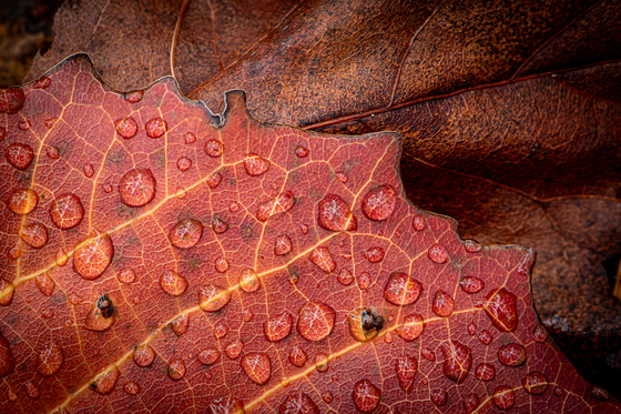 autumn forest leaves watrr droplets leaf plant tree red orange brown close-up macro_photography