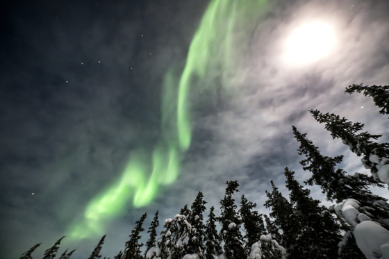 The aurora borealis did good work to outshine the low clouds and moon. Also, the big dipper made an appearance!