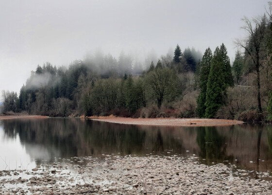 Tagged: fraser river plant tree fir nature outdoors pond water vegetation scenery land weather woodland wilderness lake reservoir natural_landscape atmospheric_phenomenon bank reflection forest morning