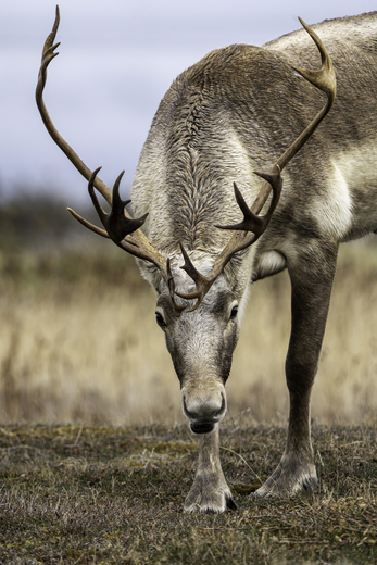 A young bull caribou making their way towards the herd in hopes to challenge for control.