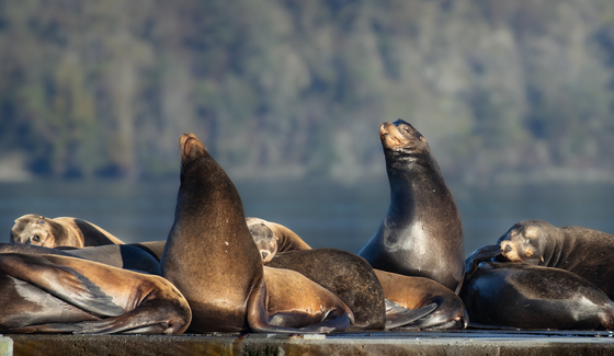 this large group was all cuddled up together on the dock enjoying the sunny day