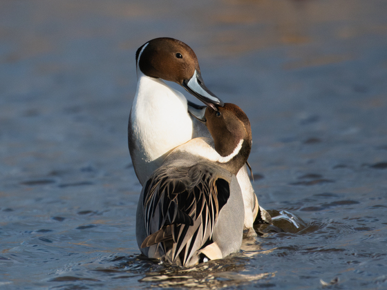 Two male Northern pintails fighting over a female. Taken on December 2025