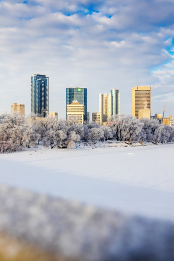 One of those rare days when frost meets a sunny day and didn’t want to miss the frost winnipeg skyline