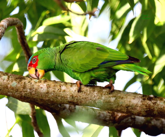 parrot animal bird parakeet beak green red vertebrate neck yellow terrestrial_animal