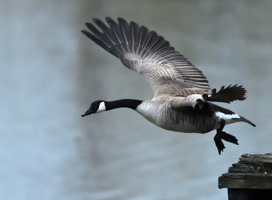 Timed this shot just as the Canada Goose took flight from an abandoned pier on the Steveston waterfront.
