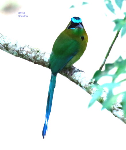 blue crowned motmot animal bee_eater bird beak jay green vertebrate wing feather wildlife tail twig terrestrial_animal