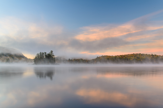 Tagged: quebec tremblant landscape autumn nature sunrise outdoors weather fog mist scenery water sky lake water_resources atmospheric_phenomenon cloud natural_landscape reflection wilderness bank
