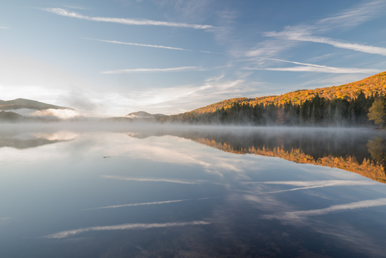 Tagged: quebec tremblant landscape autumn nature sunrise outdoors weather lake water scenery plant tree fir sky blue water_resources body_of_water natural_landscape reflection wilderness horizon