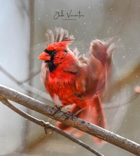 sudden shake sends droplets flying as this Northern Cardinal resets each feather after a bath — restoring the structure that keeps him dry, insulated, and ready for flight. Jade Vincentini Nikonz6ii-800mm
