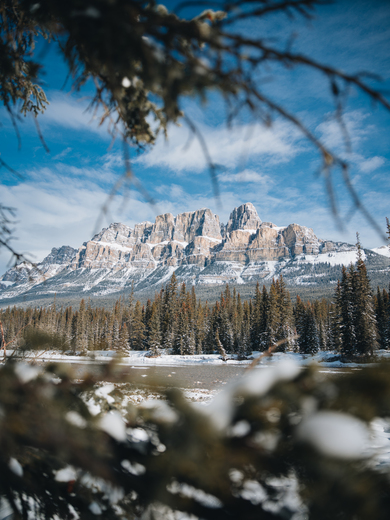 alberta banffnationalpark parkscanada plant tree fir mountain mountain_range nature outdoors scenery conifer peak ice mountainous_landforms snow winter wilderness freezing terrain glacial_landform larch