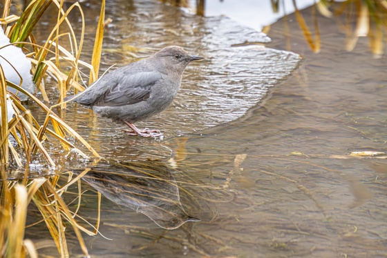 I went out for a drive over the weekend, one area was like spring and the other area I went, was winter. I was walking down the road, as I seen a few Chickadees in some willows, and stopped to find which bird was singing its little heart out. That's when I found this American Dipper, I had no idea they sung such beautiful songs. I was captivated by this little bird as it sung away on the thin ice forming on the creek.