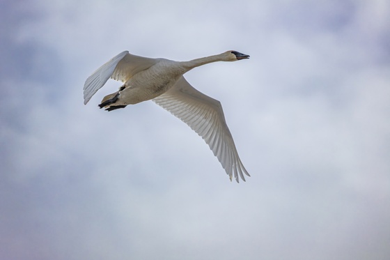 I was driving home and saw a lone swan flying in the opposite direction. I pulled over to see if it was going to land anywhere close, but it was still going. I started on my way again, only for the swan to catch up to me when I was on the highway. I decided to drive to the other side of town, following alongside the swan. When I got to the other side of town, I had a good idea of where it was headed. Once there, I got out of my vehicle, to get a better look at where this swan was, it took me a minute to find it and it was exactly where I thought it was going to be. The body of water was still frozen, so it did a few circles and started headed back the way it came. I didn't expect for it to fly nearly right over me, but I was so glad I was in the right place at the right time.