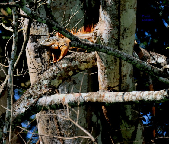 green iguana plant tree tree_trunk vegetation animal lizard reptile branch twig trunk